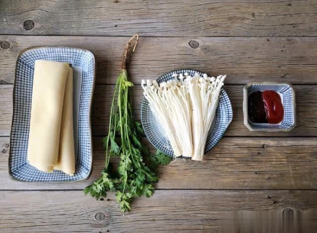 【所需食材】:干豆腐,金针菇,多味辣酱,胡萝卜。