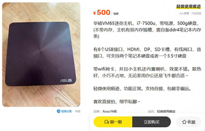 最近二手鱼里刷到不少迷你主机,大几百的价钱看着王人挺香,但真刚巧得买的真未几。但今天看到这台500块的华硕VM65迷你主机还有点好奇赞佩,卖家还配的是i7不休器,忍不住点进去好好商榷了一番。