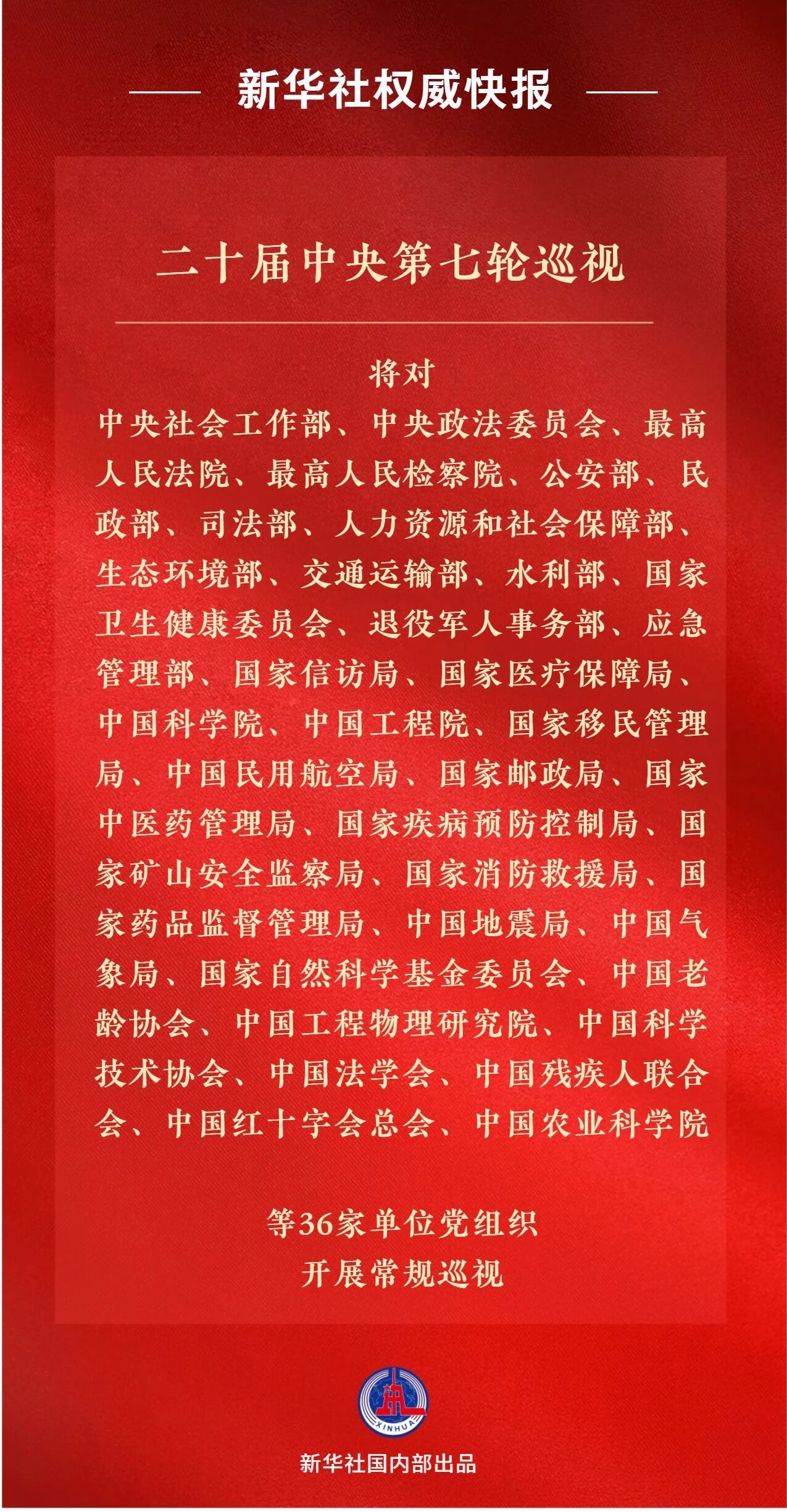 ·二十届中央第七轮梭巡对象公布
