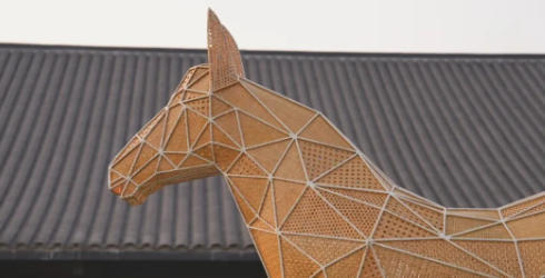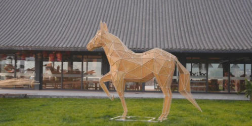 一匹高3米、长5米的竹编骏马