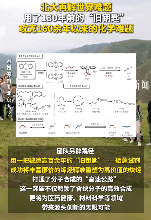 3月17日凌晨,北京大学药学院焦宁教讲课题组在Nature上在线发表研有计划文,微妙借助一种尘封130余年的硒蒽试剂,攻克了160余年以来由烯烃合成炔烃的化学穷困。烯烃中的碳碳双键是“折线形”骨架,而炔烃中的碳碳三键则是“直线形”结构,若何将前者弯曲为后者,爱游戏app是困扰科学界长达一个多世纪的穷困。团队别有肺肠,用一把被淡忘百余年的“旧钥匙”——硒蒽试剂,班师将丰富低价的烯烃,精确重塑为高价值的炔烃。买通了分子合成的“高速公路”,这一冲破不仅解锁了含炔分子的高效合成,更将为医药健康、材料科学等领域带起原头改进的无尽可能。