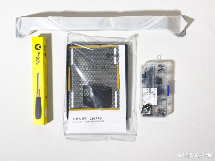 先来望望机箱,除了内容外配件也很全,而且螺丝、铜柱、理线扎带等齐单独包装,以致还贴心配备了螺丝刀,无谓罕见找器具,装配的时候辩认螺丝也很浅近,这点对外行比拟友好。