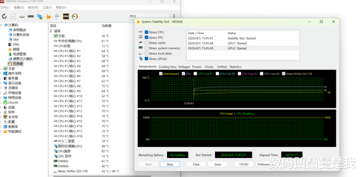 烤机30分钟,高负载下温度齐挺低的,诚然当今是春天,气温没那么高,但按照这个水准,即等于夏天也不太可能说因为温渡过高导致降频死机之类的问题。