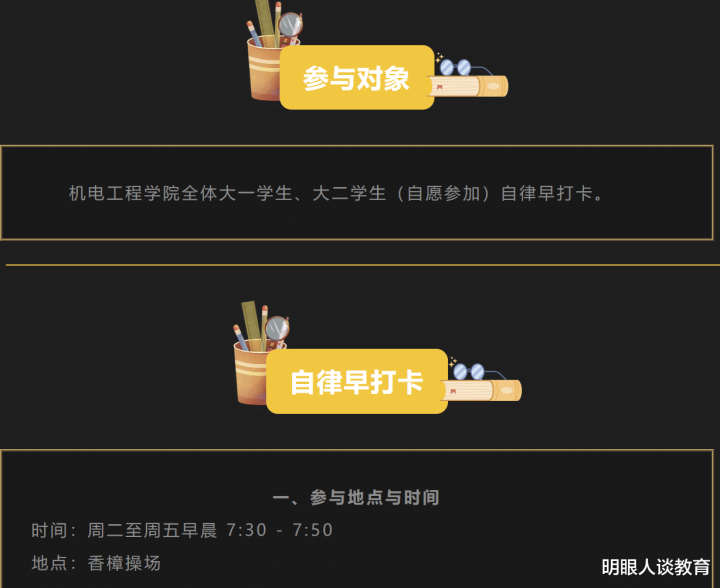 除了开家长会,成电这个机电学院还有个让东说念主随机的操作条款知生上早自习。