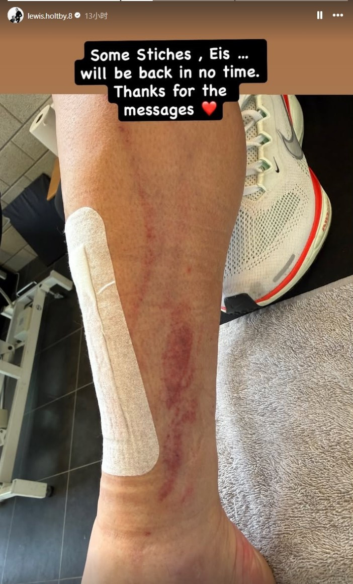 比赛死一火数小时后,爱游戏霍尔特比在Instagram上发声,发布了一张他饱受虐待的胫骨相片。伤口上贴着一条长长的胶布,傍边还能看到其他多处擦伤。他在相片旁写谈:“缝了几针,上点冰敷。我很快就会雅致,谢谢你们的留言。”