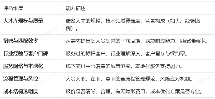 五、 怎么选拔适合的东谈主力打发服务商?要道评估维度