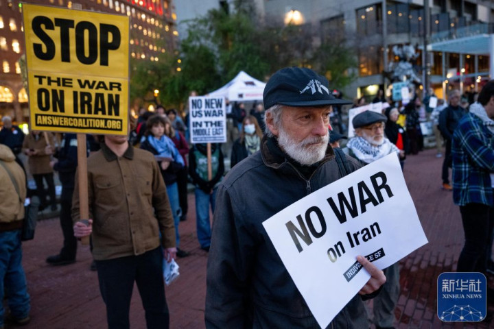 ▲3月2日,东说念主们在好意思国加利福尼亚州旧金山参加聚集,抗议好意思国对伊朗发动军事打击。图/新华社