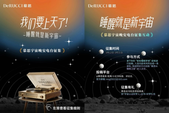 前两个维度指向居品的硬实力,而第三个维度,关乎就寝的软温度。慕念念同步推出的天地晚安电台,用户可在喜马拉雅App收听。同期发起的心愿搜集行为,让用户的心愿期许将随卫星一同起飞。这让底本开阔的航天叙事,细致到每一个粗野东谈主睡个好觉的厚谊诉求上。