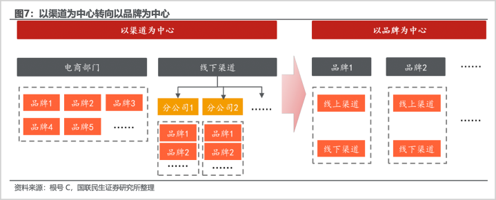 另一方面,公司进行了真切的组织架构重塑,从此前渠说念驱动更正为品牌驱动,创立以品牌为作战单位,事迹部为训诲中心的敏捷组织。这些举措,擢升了面向强烈市集竞争的战争力和反映能力。